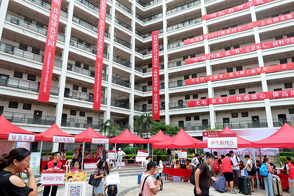 值得一提的是,为尽可能减少新生和家长的奔波劳顿,今年的新生报到流程进一步简化。与往年的“一站式”报到服务相比,今年校园内不再设置报到点,各二级学院也不再安排迎新点,新生报到前在学校官方微信平台“厦理工e起来”输入“所在学院+性别”,就能查询到自己即将入住的宿舍区。报到当日,新生直接前往宿舍区报到点刷码即可,领取到写有宿舍号和床位号的住宿单,报到的流程也随之完成,可谓尽享“拎包入住”的高效与便捷。为了方便新生及家长,学校还在校园主要路口设置了多处迎新公共服务点,由各相关学院负责新生报到的咨询、引导和服务等事宜。和往年一样,学校今年也邀请了夏商集团进驻校区,为新生提供品类齐全且质优价廉的商品,所有商品均为夏商百货超市专柜正品,严格执行国家“三包”,大大方便了新生用品采购。