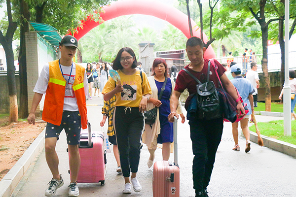 十年寒窗,父母是孩子求学路上永远伫立的后盾。踏入大学校门,不仅仅是孩子人生的一个重要起点,也是父母生命中的一个重要时刻。我校始终认为,只有具有浓烈亲情观念的人,才能体恤他人、关怀社会,成为有责任感的人。为此,学校倡议家长陪同孩子入学,体验难得的亲情旅行,见证孩子成长过程中的重要时刻。在迎新现场,许多新生“携家带口”而来,满满都是亲情陪伴的幸福。
