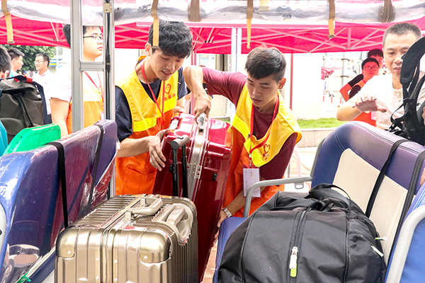 志愿者活跃在新生报到需要帮助的每一处